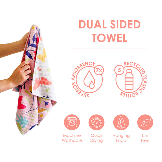 Got these towels as gift originally and decided to order a couple more! They're not only cute but super functional - absorb a lot of liquid and are durable. Bonus points for being made of recycled materials!!